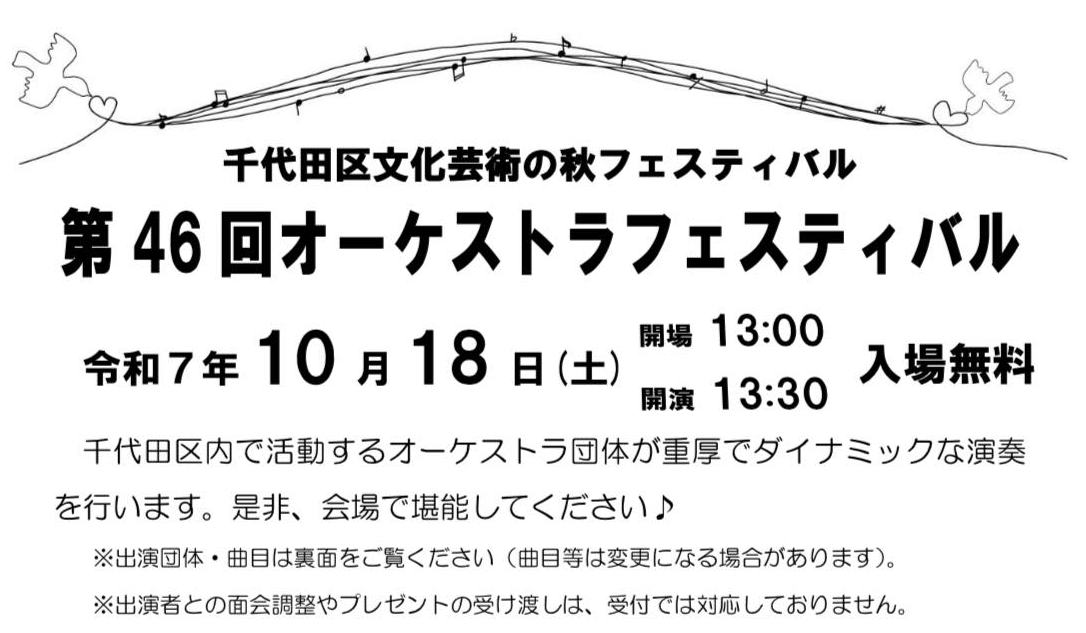 千代田区文化芸術の秋フェスティバル第46回オーケストラフェスティバルに出演いたします。